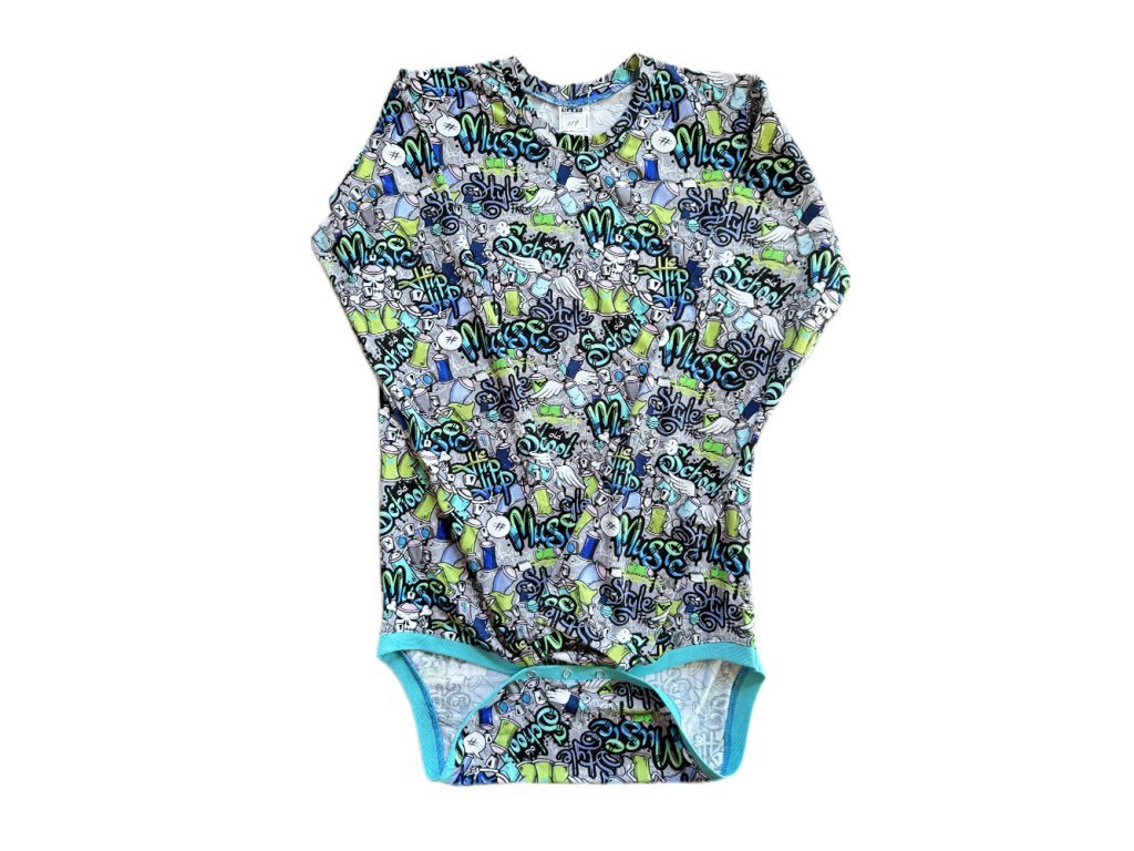 Praktické bavlněné triko (body) má elastický lem a šikovný tvar výstřihu, díky kterému se dobře obléká přes hlavu. V rozkroku je zapínání na 3 cvoky, které zajišťuje, že se tričko nevyhrnuje a chrání záda před zimou a podchlazením. Nově barevné lemy na koncech rukávů.