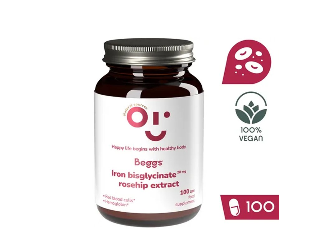 BEGGS Iron bisglycinate 20 mg, rosehip extract (100 kapslí)