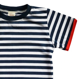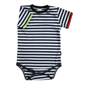 Nově bodytrička s červeným lemem, ve stejné barvě proužků.