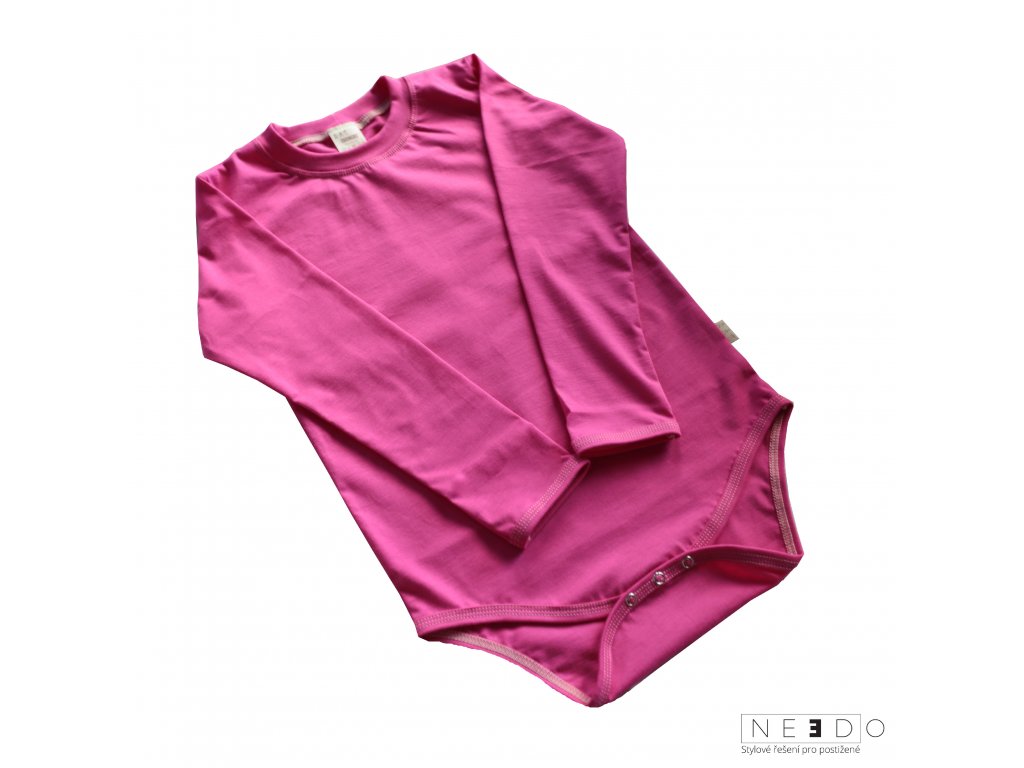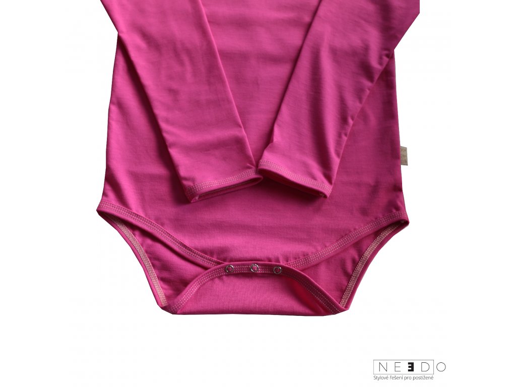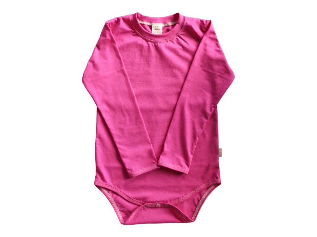 Praktické bavlněné triko (body) má elastický lem a šikovný tvar výstřihu, díky kterému se dobře obléká přes hlavu. V rozkroku je zapínání na 3 cvoky, které zajišťuje, že se tričko nevyhrnuje a chrání záda před zimou a podchlazením. Nově jsem přidali na koncech rukávů barevné lemy.