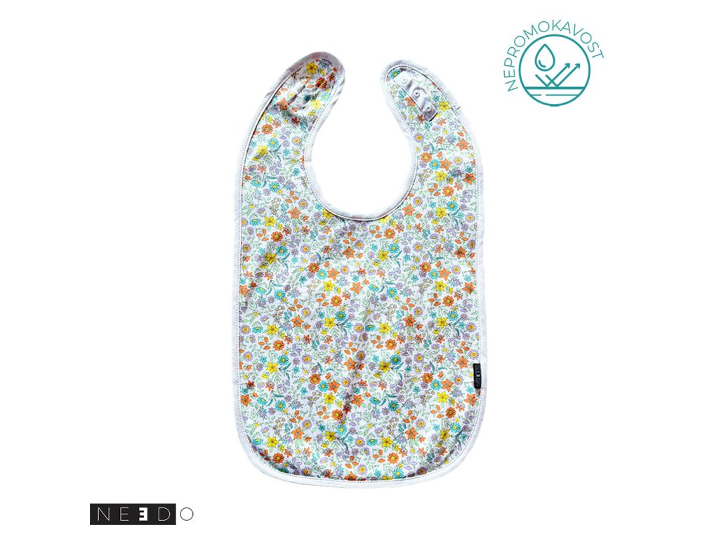 Nepropustný praktický bryndák z jemného bavlněného úpletu z vnější strany a úpletu s nepropustnou membránou z vnitřní strany je vhodný pro starší děti a dospělé s postižením.