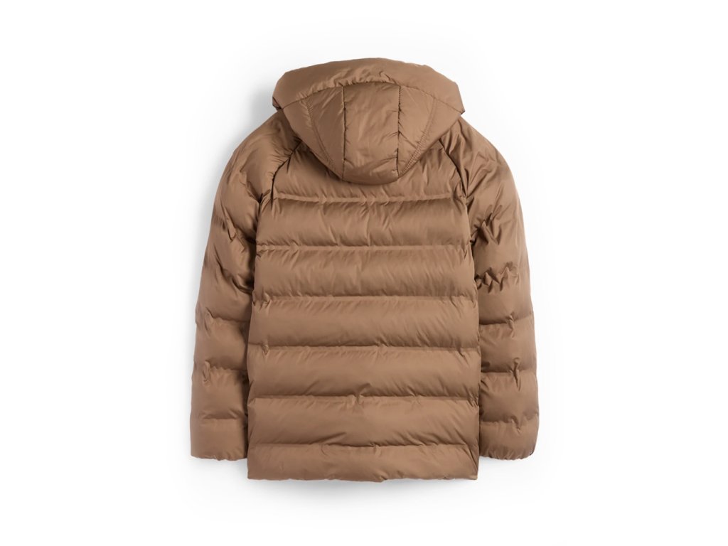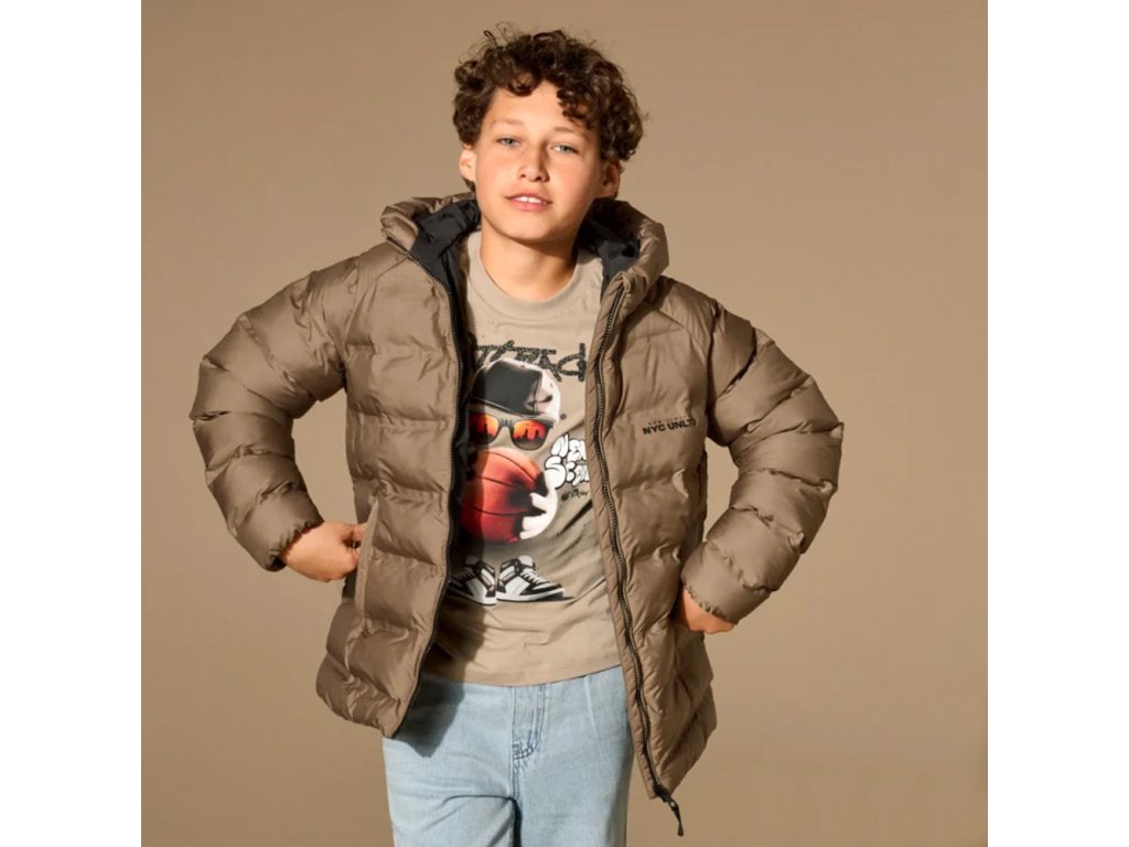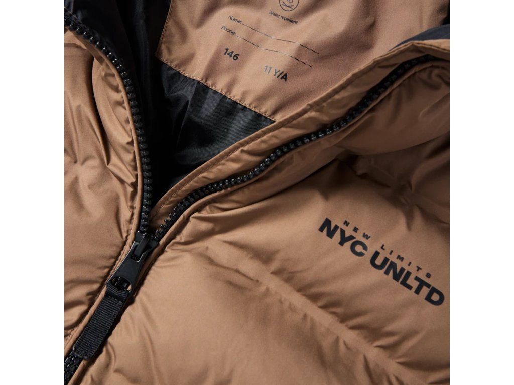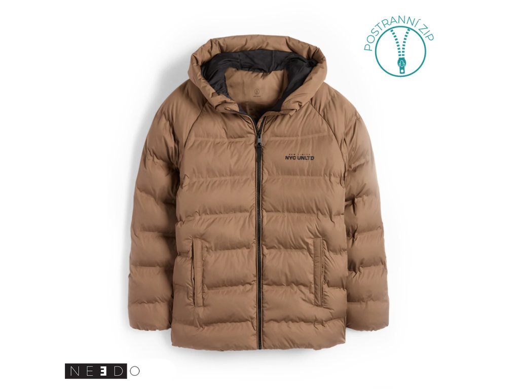 Tato zimní bunda je lehká, ale hřejivá. Po stranách má našité zipy, které vedou po celé délce - od spodního lemu na boku až po okraj rukávu. Postranní zipy je možné zcela rozepnout a bundu obléknout bez větší námahy na dítě nebo dospělého, který je sám omezen v pohybu.