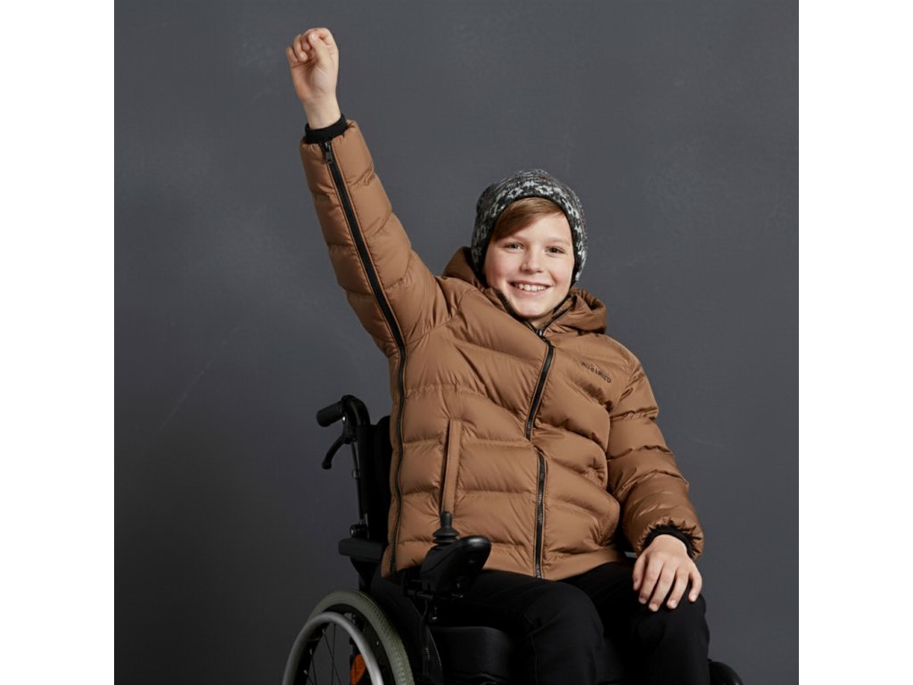 Příjemně teplá zimní bunda, která je doplněna postranními zipy pro snadnější oblékání postiženého člověka s hendikepem.