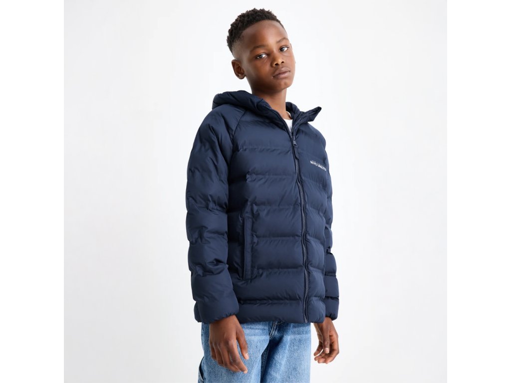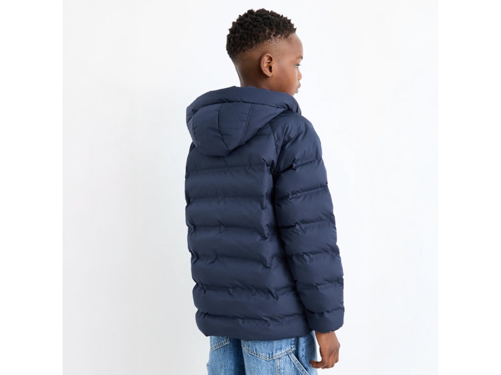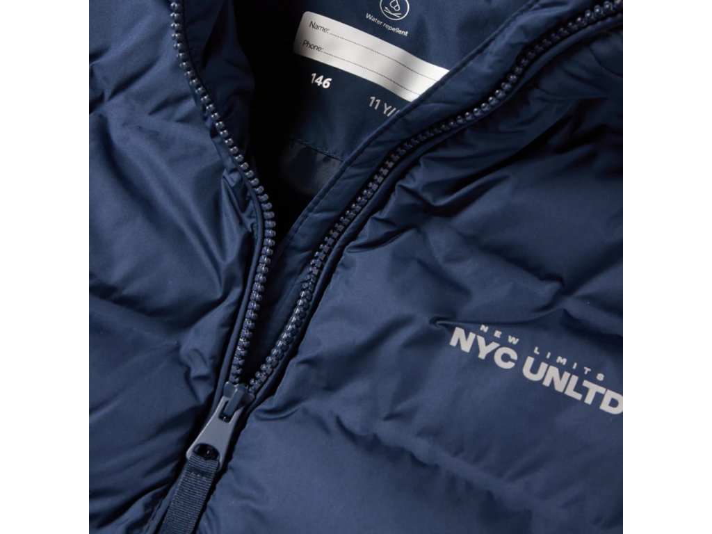 Tato zimní bunda je lehká, ale hřejivá. Po stranách má našité zipy, které vedou po celé délce - od spodního lemu na boku až po okraj rukávu. Postranní zipy je možné zcela rozepnout a bundu obléknout bez větší námahy na dítě nebo dospělého, který je sám omezen v pohybu.