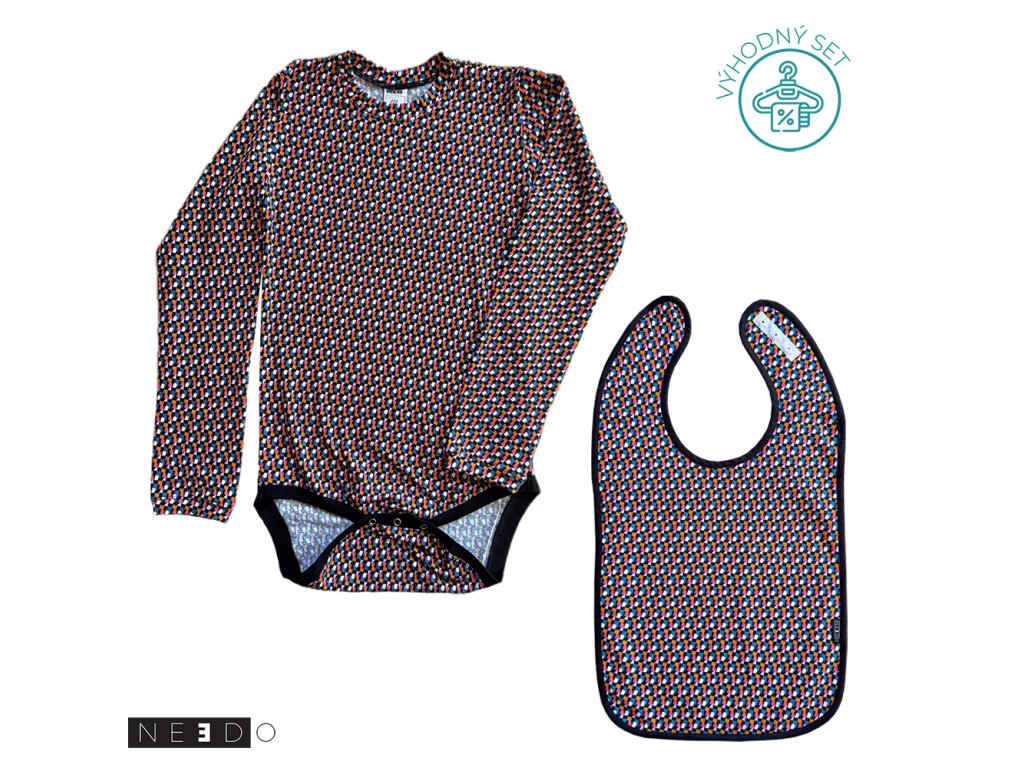 LIMITOVANÁ EDICE: Praktické bavlněné bodytričko s dlouhými rukávy a bryndák ve stejném motivu. Tím se stává funkční nepromokavý bryndák zcela neviditelným.
