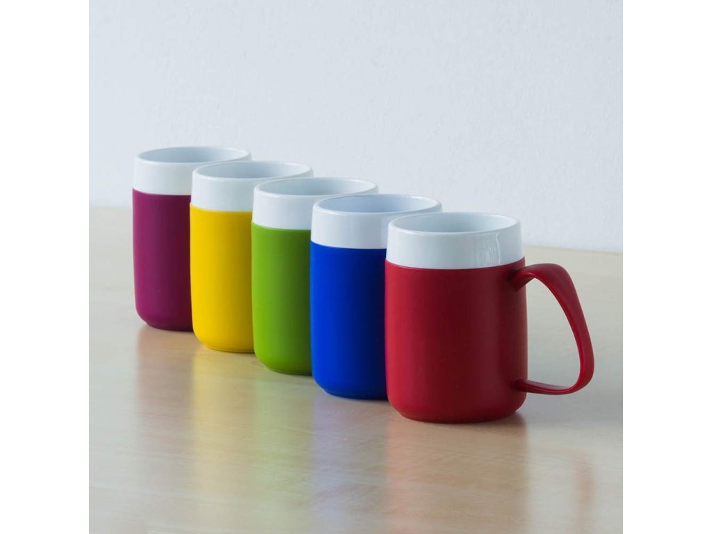 Velká rukojeť nejen poskytuje dobrou oporu, ale také dává hrníčku jedinečný vzhled. Vnitřek je v bílé barvě, aby nenarušil pravou barvu nápoje a dal designu přitažlivou svěžest s bílým okrajem.