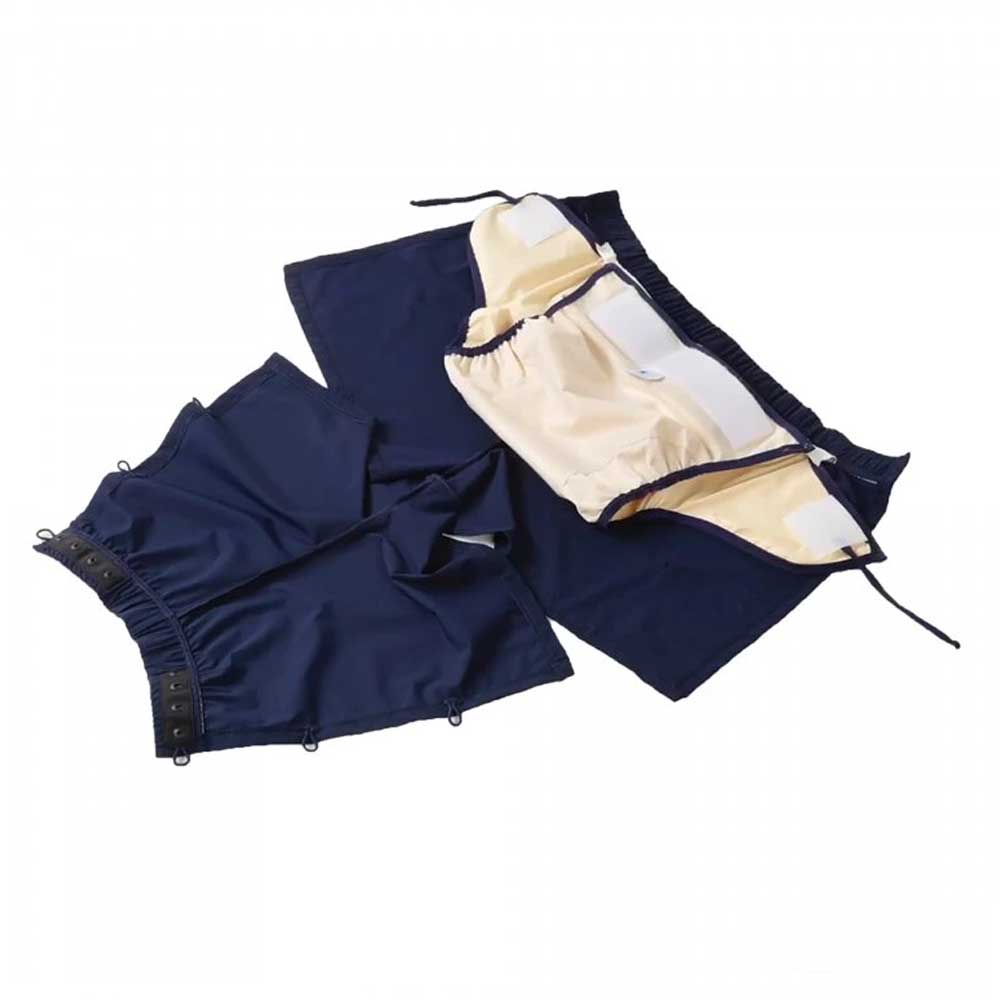 Chlapecké a pánské zavinovací plavecké šortky s postranním zapínáním a se všitými vnitřními inkontinenčními slipy z nepromokavého materiálu. Plavkové kraťasy mají po obou bocích zapínání na knoflíky, díky čemuž je lze velmi pohodlně oblékat. Jsou navrženy zejména pro ležící osoby a slouží jako ochrana při střevní i močové inkontinenci.