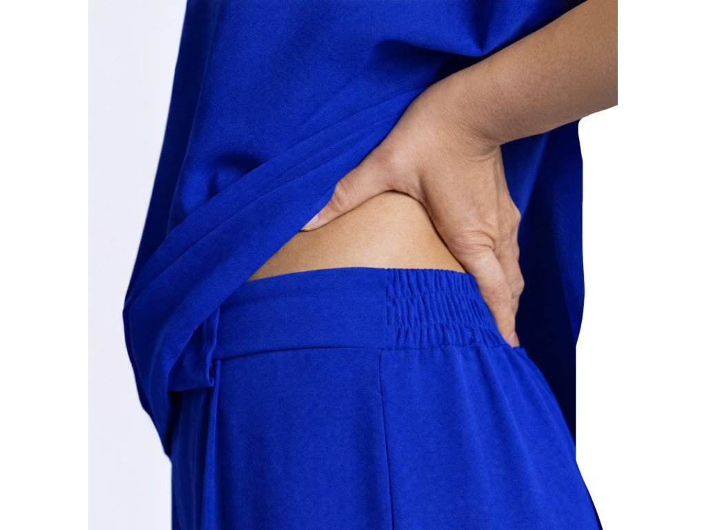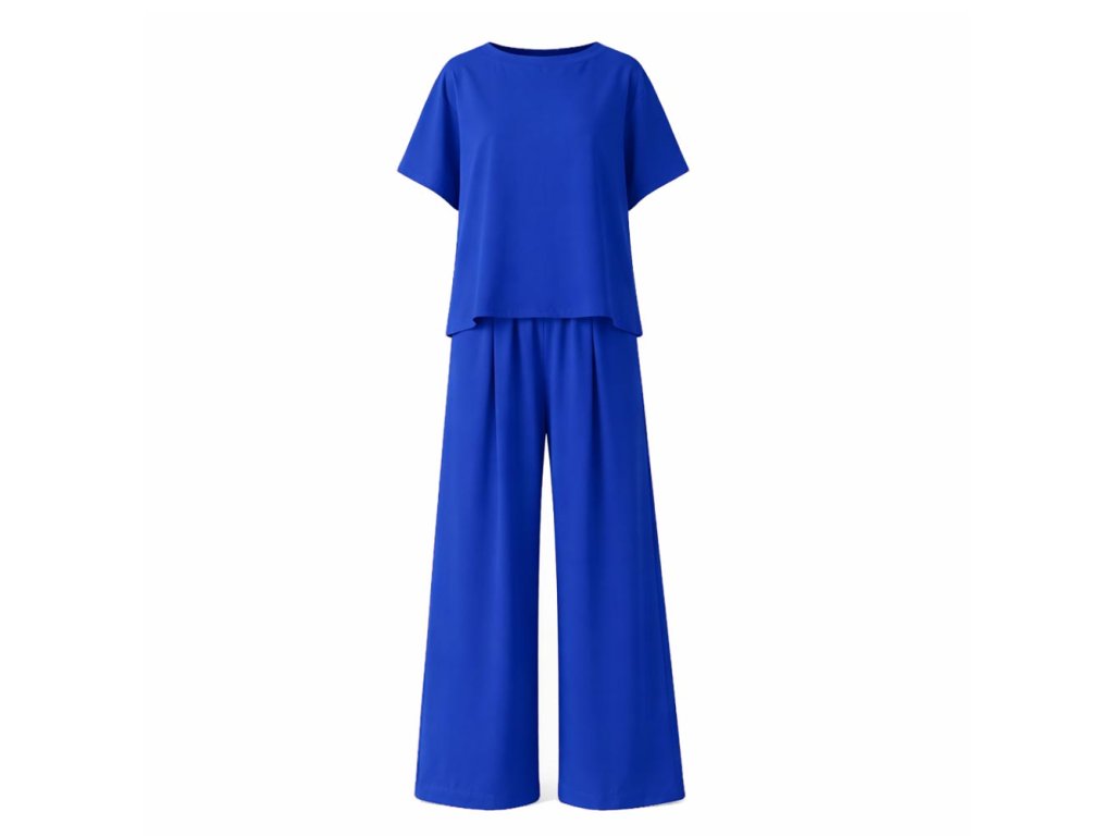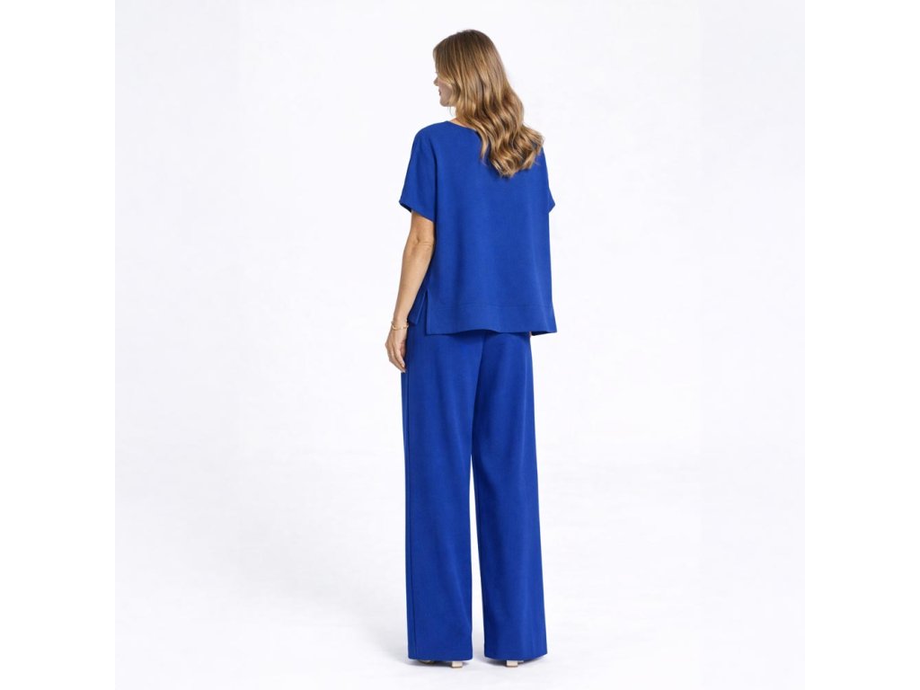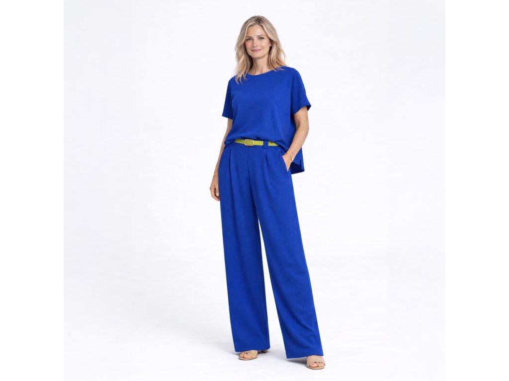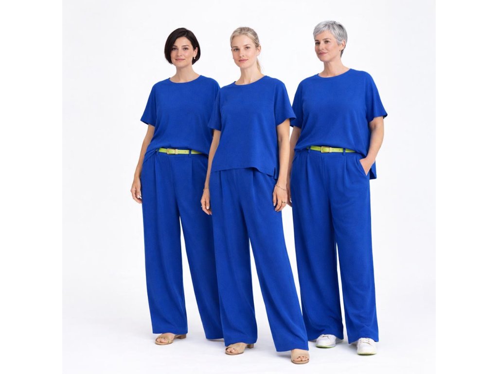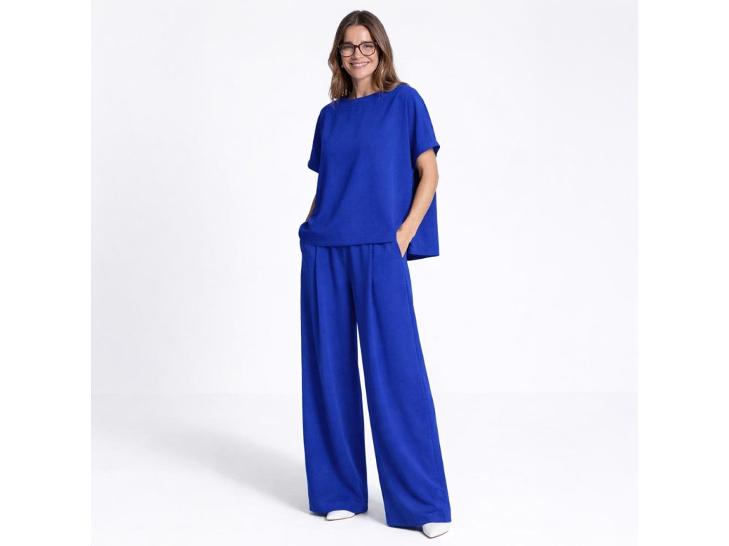 Pohodlný set trika a kalhot je ideální volbou pro každodenní nošení. Je ušit z jemného, splývavého a příjemného na nošení materiálu, který v teplejších dnech působí příjemně chladivě. Set je ideální do práce, na procházku, na cestování, na víkend i běžný den, kdy chcete být v pohodlí a zároveň upravená.
