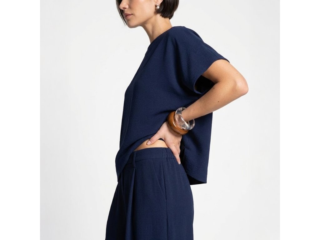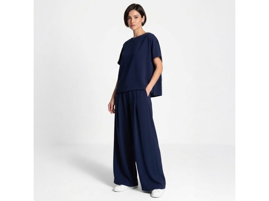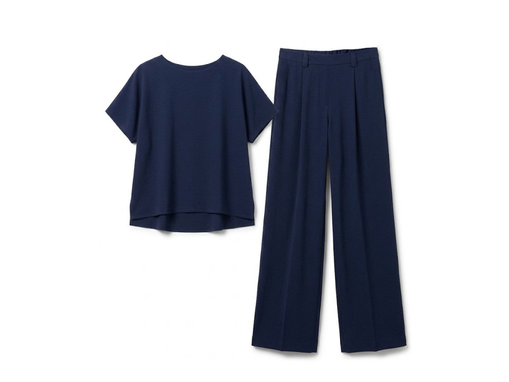 Pohodlný set trika a kalhot je ideální volbou pro každodenní nošení. Je ušit z jemného, splývavého a příjemného na nošení materiálu, který v teplejších dnech působí příjemně chladivě. Set je ideální do práce, na procházku, na cestování, na víkend i běžný den, kdy chcete být v pohodlí a zároveň upravená.