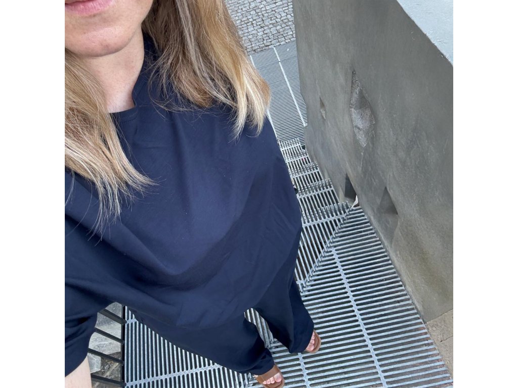 - dlouhé tričko, které zakryje větší zadek a pro hubenou postavu poslouží jako šaty. Zajímavostí tohoto kousku je, že nemá na 3/4 rukávech a na spodním lemu žádné švy a tak se nevlní a hezky pevně drží svůj tvar. Materiál je boží na nosení i údržbu. Toto triko opravdu chcete!